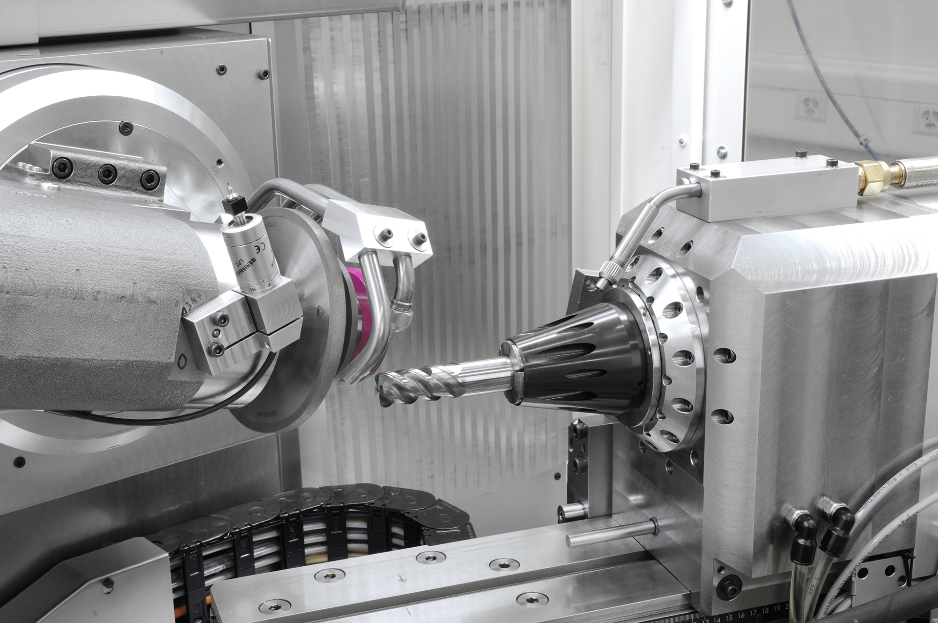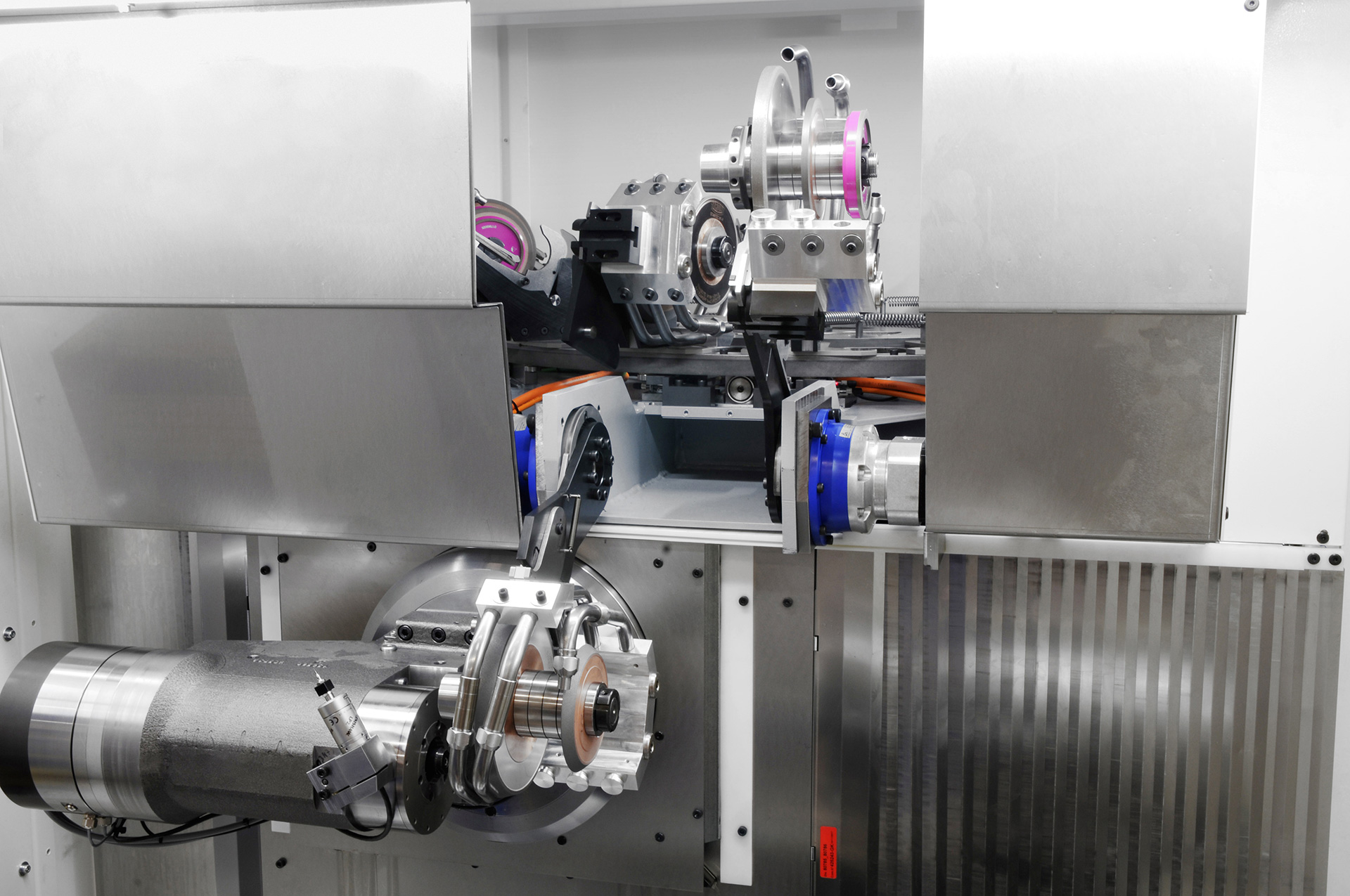 The GrindSmart®830XW integrates the innovative combination of hydrostatic technology and linear motors to produce large and small series with 6 axes interpolated simultaneously. This concept provides an exceptionally high degree of rigidity and dampens vibrations that naturally occur during grinding, thereby increasing the life of the grinding wheels and guaranteeing surface finishes and sharp cutting edges that give users a real competitive advantage. Unattended production is an additional process that has been integrated into this machine to allow long-term manufacturing without human intervention.